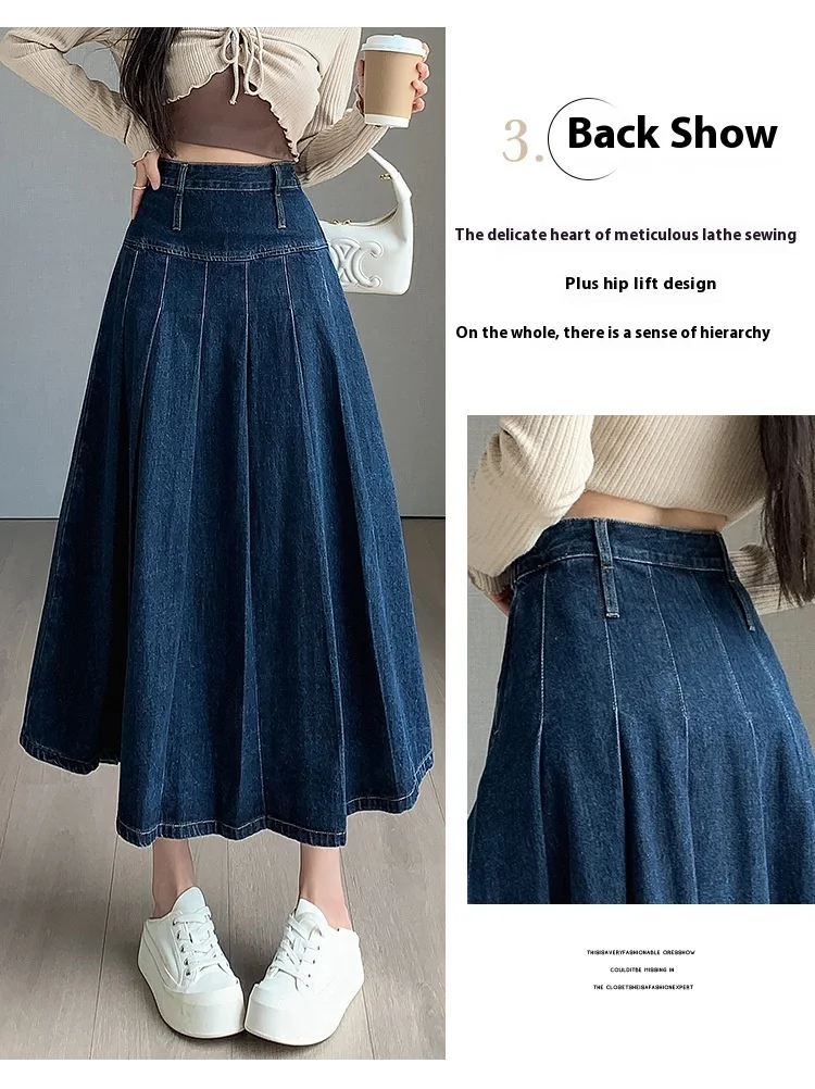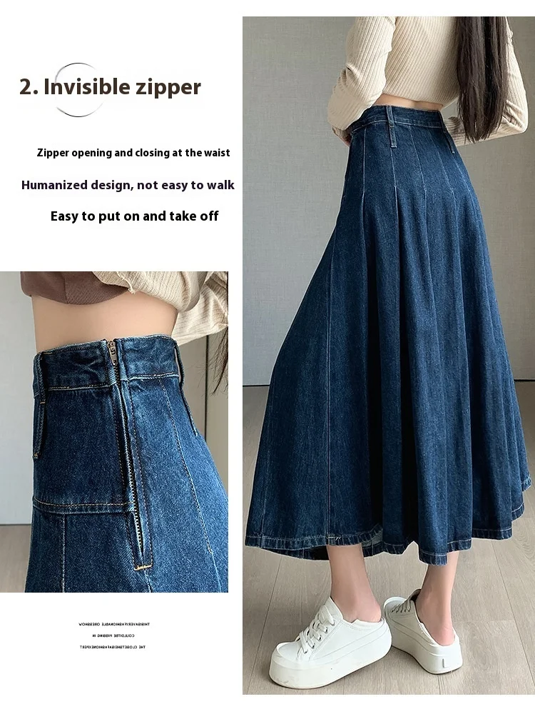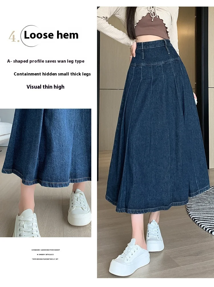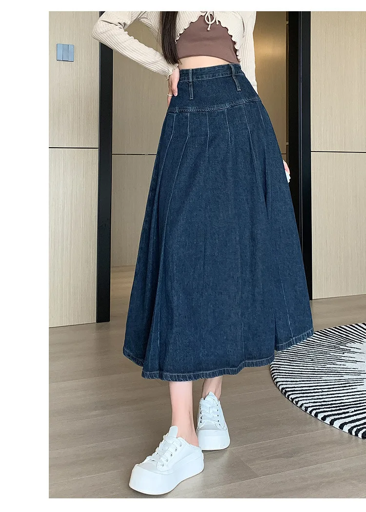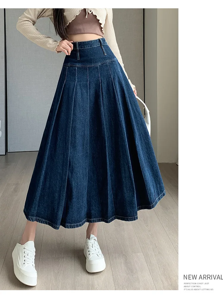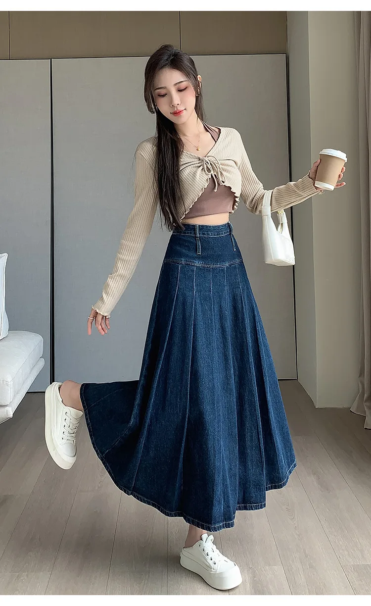 تنورة دنيم مطوية بخصر عالٍ وقصة A-Line للخريف