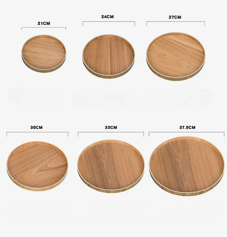 - صينية دائرية مبتكرة مصنوعة من الخشب، بملمس خشبي فريد.