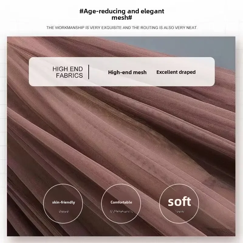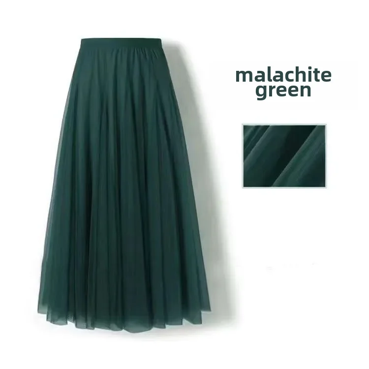 • تنورة شبكية أنيقة:تتميز هذه التنورة النسائية الشبكية المتوسطة بتصميم أنيق مطوي على شكل حرف A، مما يضيف لمسة من الأناقة إلى مجموعة الرقص الخاصة بك.