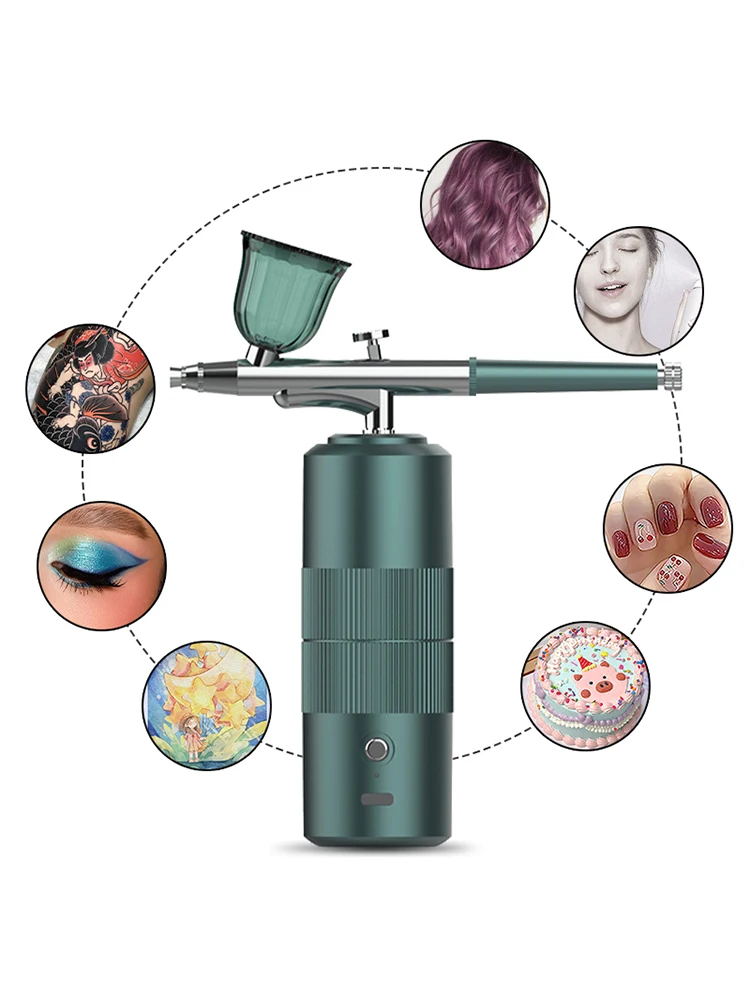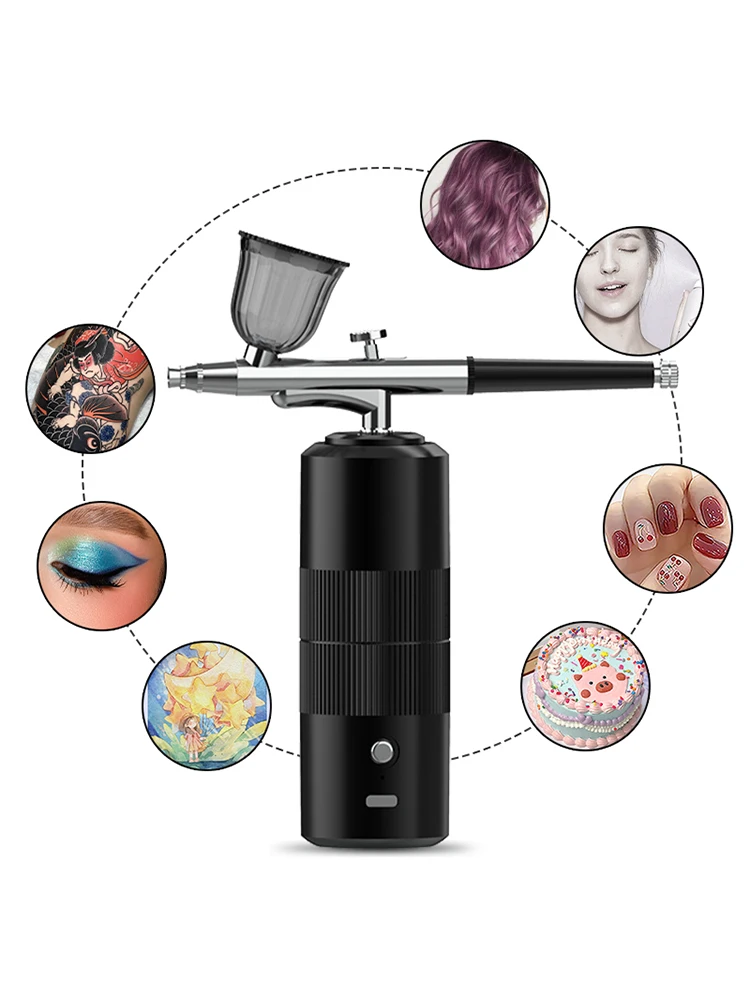 مسدس رش الجاذبية، يستخدم في الفن، وفن الأظافر، والوشم المؤقت، وتزيين الكعك، والترفيه، إلخ.