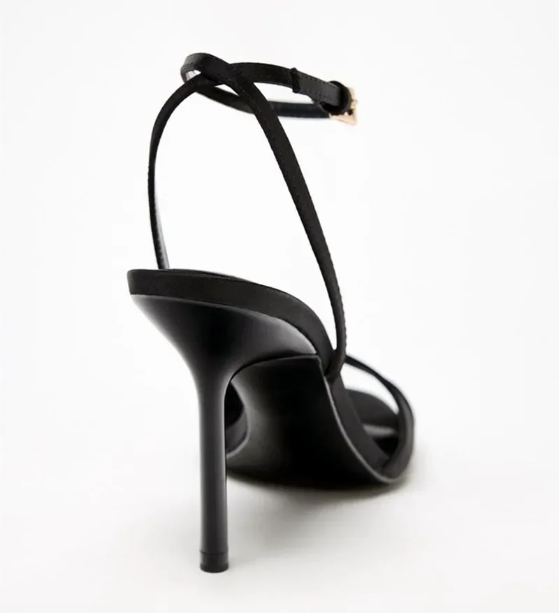 صندل نسائي بكعب عالي رفيع – تصميم ساتان أنيق بحزام كاحل ولمحة مفتوحة للصيف