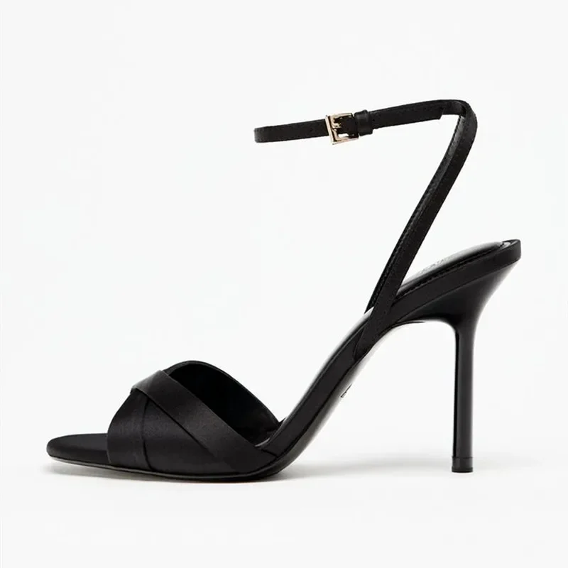 • رقم النموذج: Elegant Satin Ankle Strap Buckle High-heeled sandals