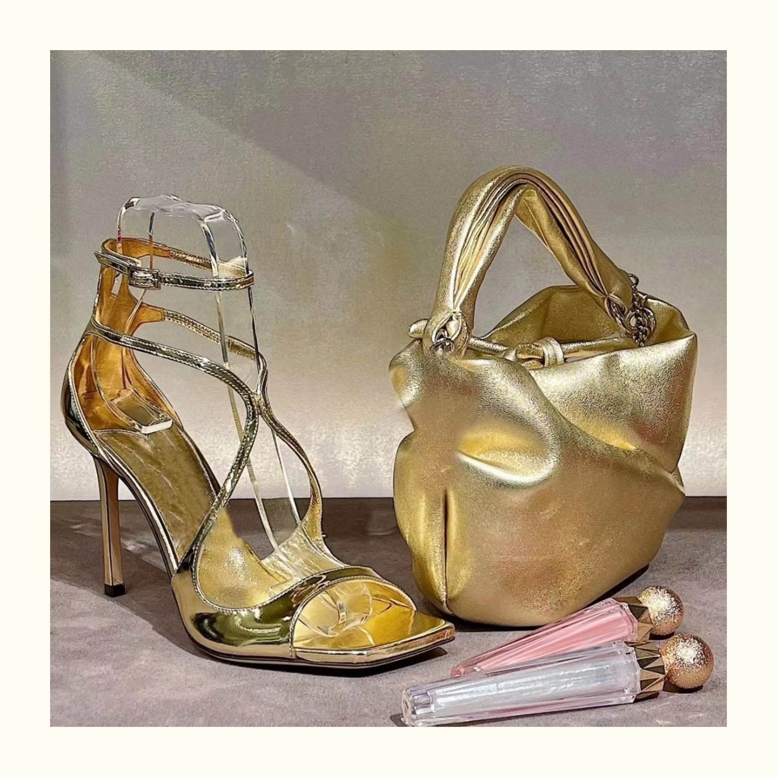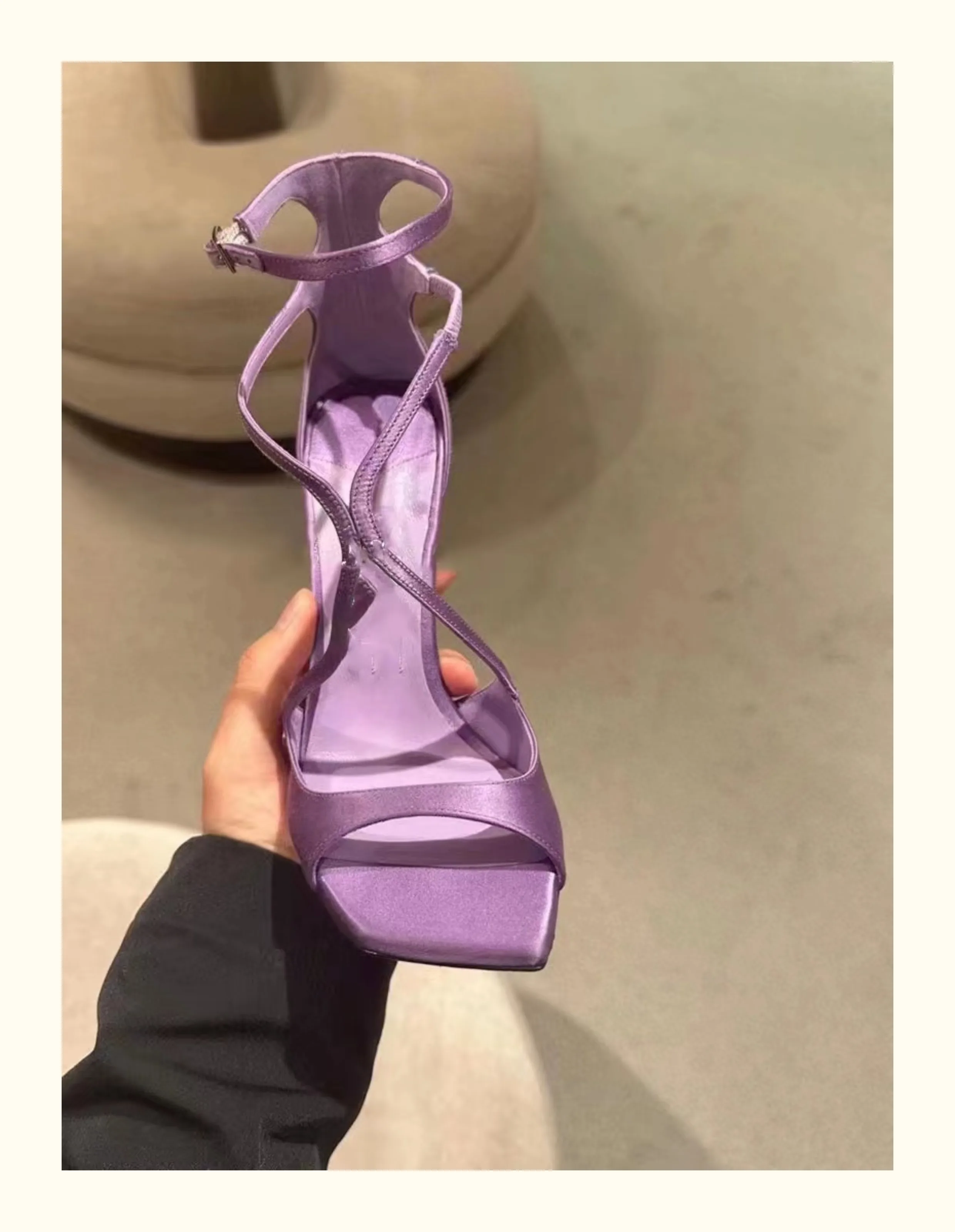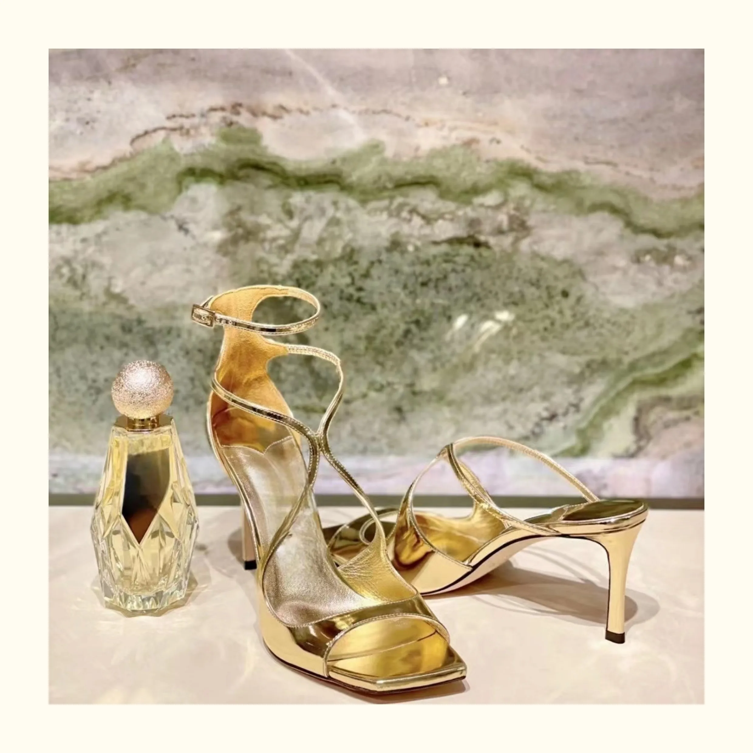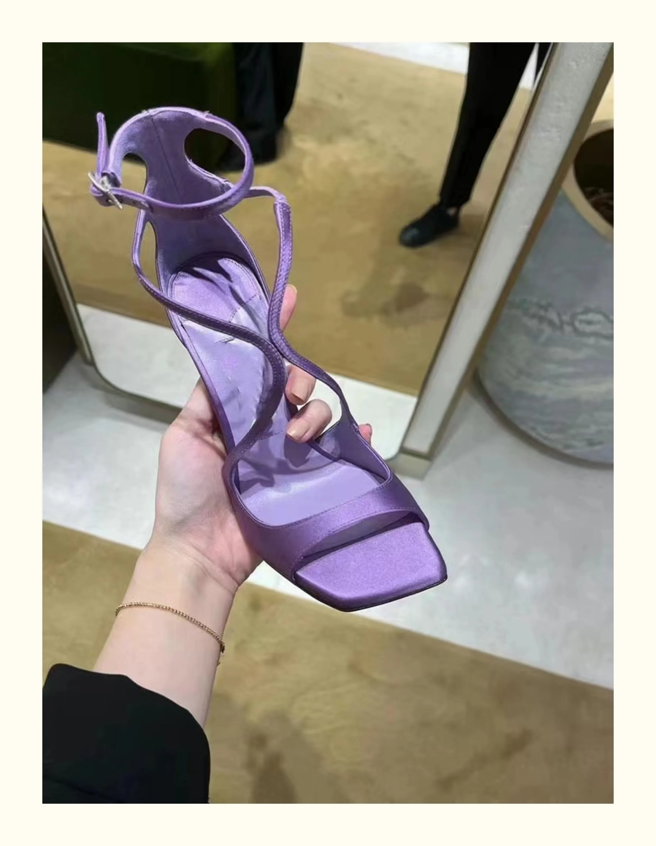 صندل مفتوح أنيق يعزز جمال القدم، بتصميم عصري ومقدمة مربعة مع فتحة فم السمكة وكعب رفيع يطيل القامة. اللون النود اللامع يضفي فخامة ناعمة وجاذبية هادئة.
