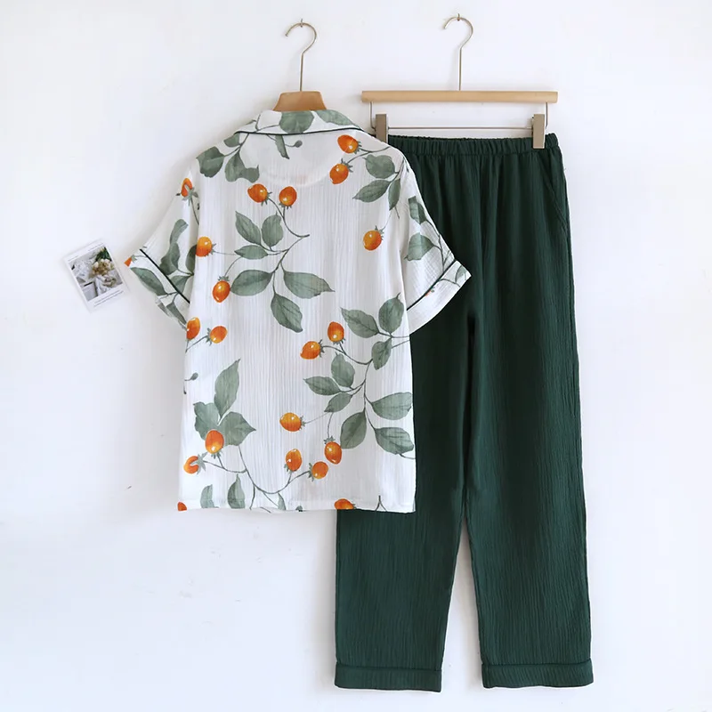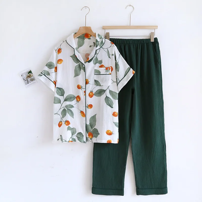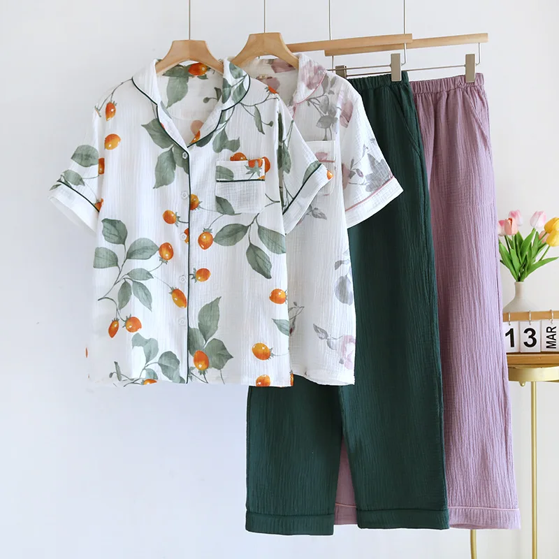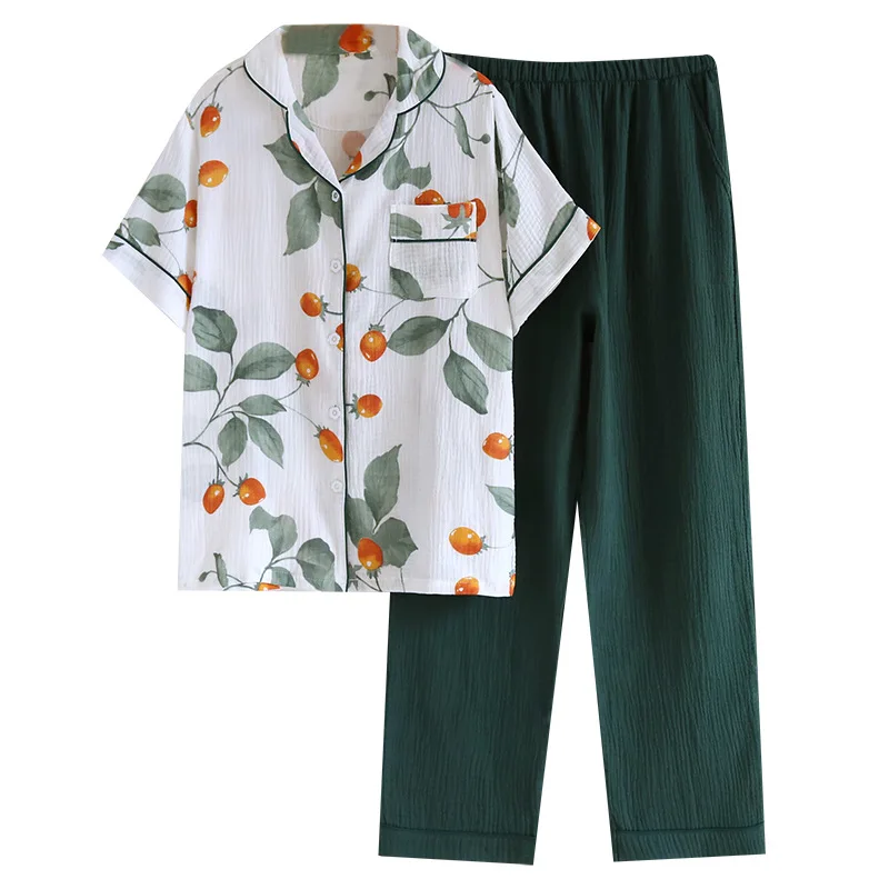 راحة يومية بطابع ناعم ومنعش. بيجاما صيفية أنثوية بستايل بسيط وعملي، تمنحك إحساسًا بالبرودة والراحة في المنزل خلال الأيام الحارة.