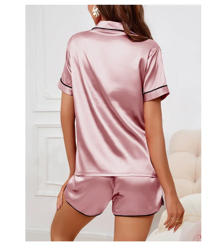 • ياقة مطوية لأسفل :تضيف الياقة المنطوية لمسة من الرقي إلى مجموعة البيجامة ، مما يجعلها مناسبة للنوم والاستلقاء على حد سواء.