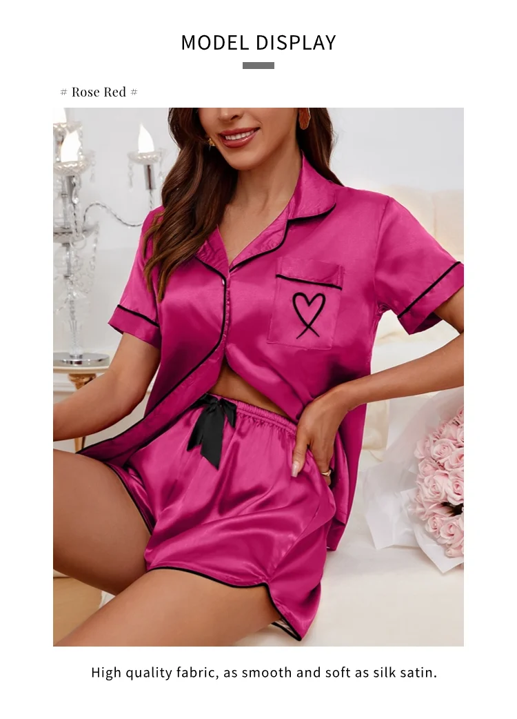 • تصميم عصري :تتميز مجموعة البيجامة النسائية بجيب مطرز على شكل قلب ، مما يضيف لمسة من الموضة والأناقة إلى ملابس النوم الخاصة بك.