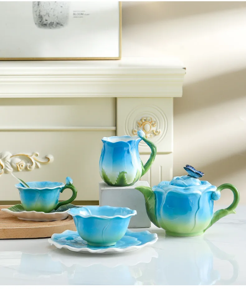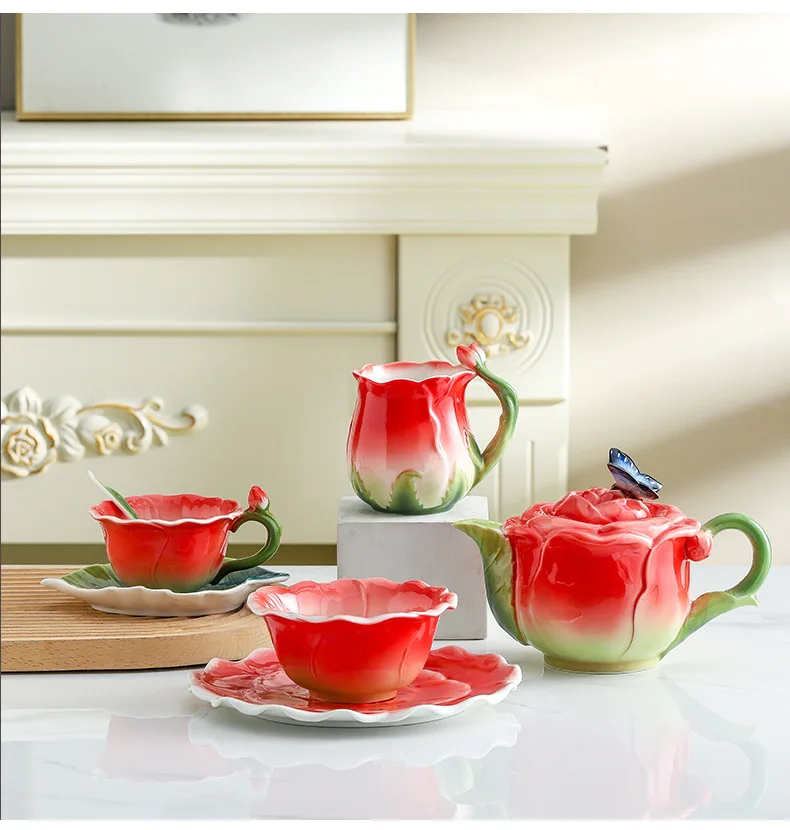 طقم فناجين شاي أو قهوة من السيراميك بتصميم أوروبي مميز، مناسب لفترة ما بعد الظهر أو الكونغ فو تي، مثالي للمكتب أو المنزل، ويُعد هدية أنيقة للأصدقاء أو الأزواج.