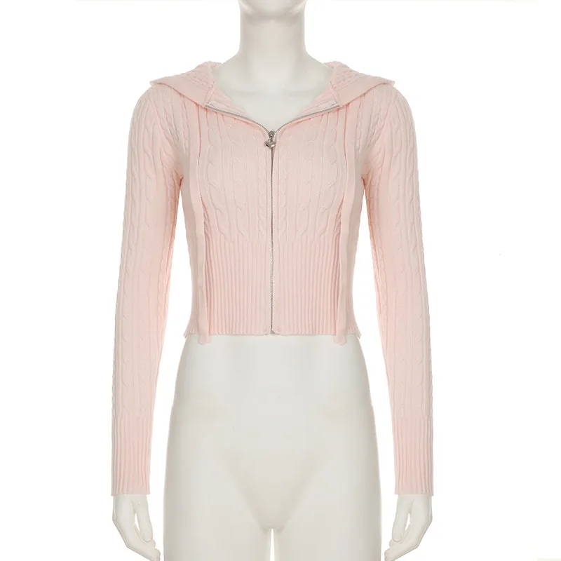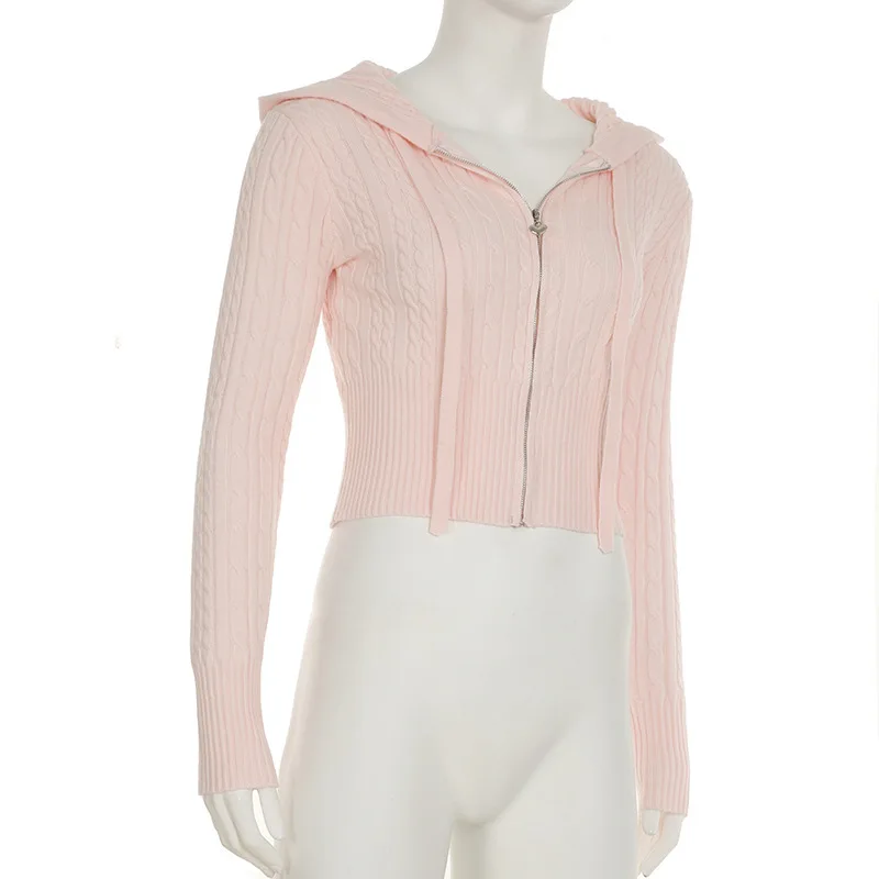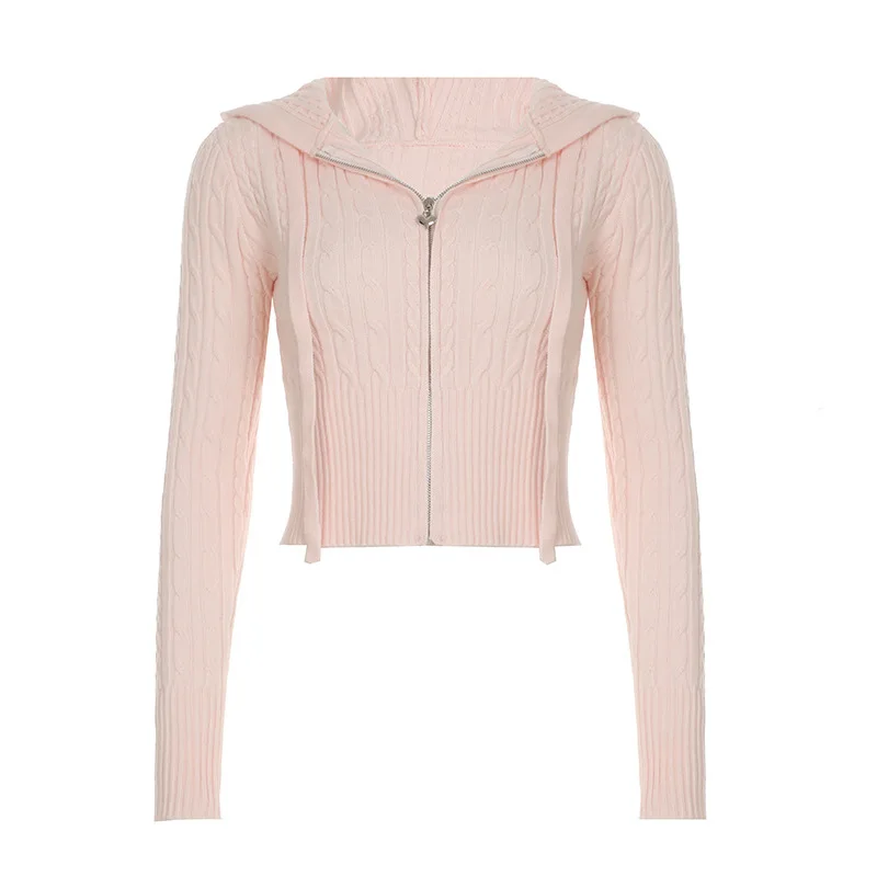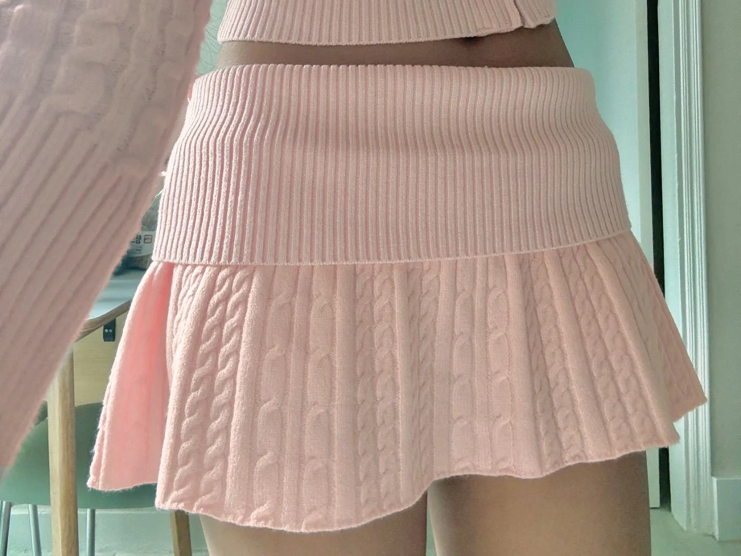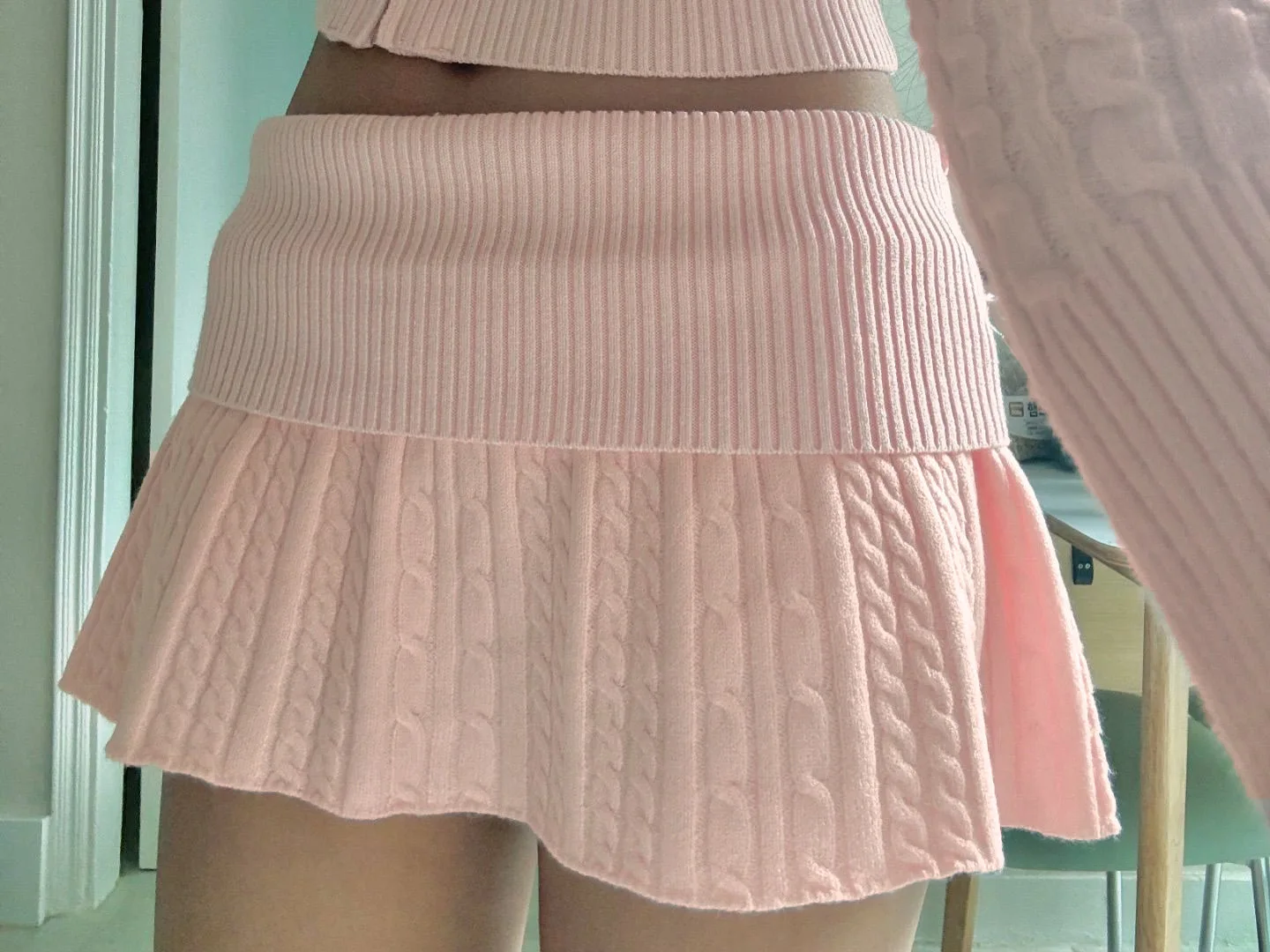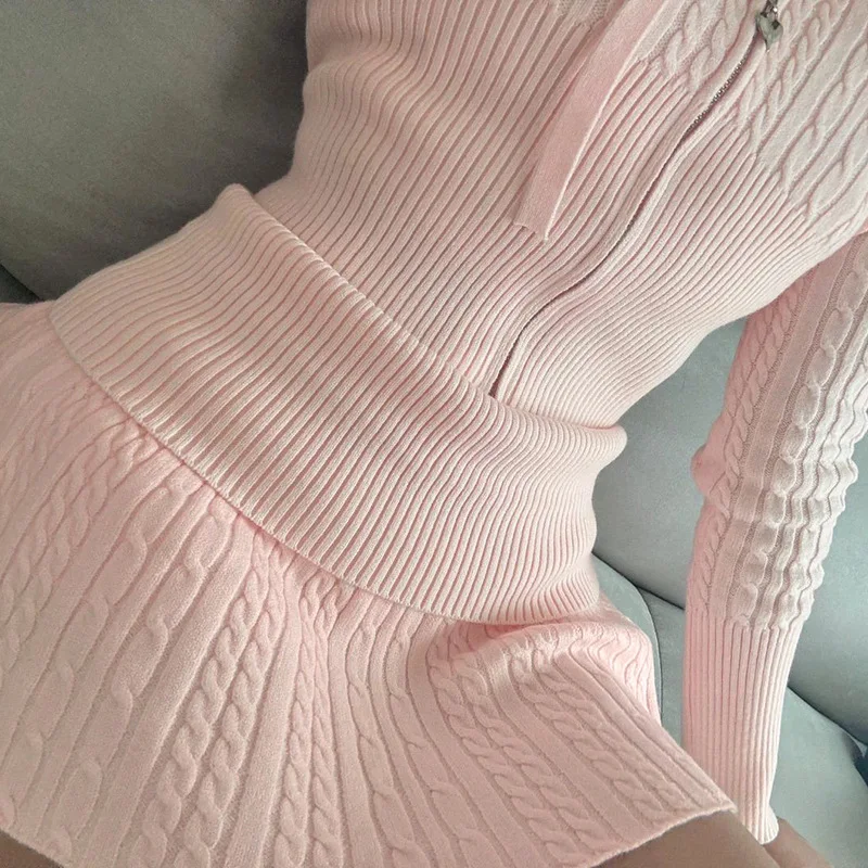 طقم أنيق مكون من قطعتين، هوديي بسحاب وتنورة عالية الخصر بلمسة مضلعة مثالية لأناقة الخريف والربيع.