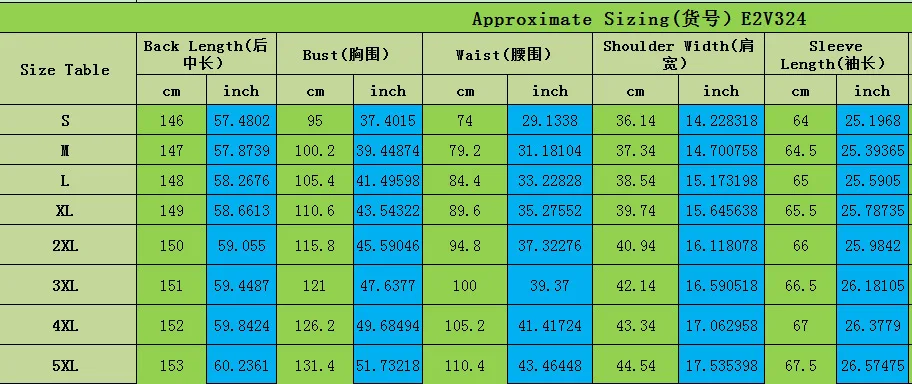 * الملاحظات: 1 بوصة = 2.54 سم. *يرجى اختيار مقاسك وفقًا لمخطط المقاسات أعلاه.يرجى السماح باختلاف قدره 1-3 سم بسبب القياس اليدوي. *قياساتنا هي قياسات الملابس، وليست قياسات جسمك! *إذا لم تكن متأكدًا من المقاس الذي يجب عليك اختياره، فيمكنك وضع قطعة مماثلة من الملابس التي تمتلكها بشكل مسطح على الأرض أو الطاولة.خذ القياسات بواسطة شريط قياس ناعم.ثم ارجع إلى جدول المقاسات الخاص بنا لتحديد المقاس الذي يجب عليك شراؤه!