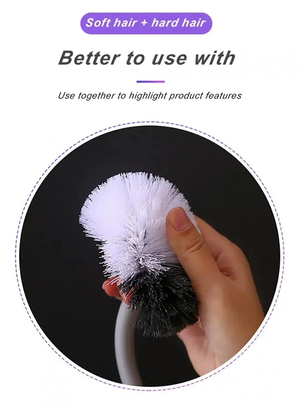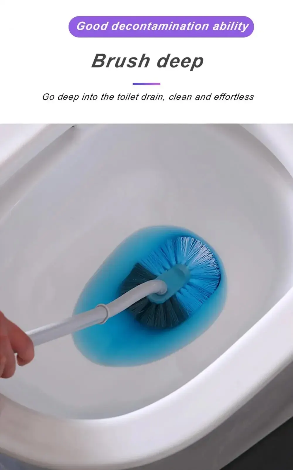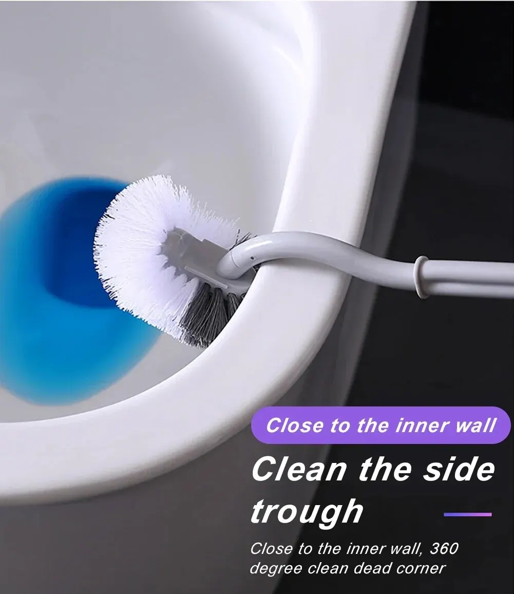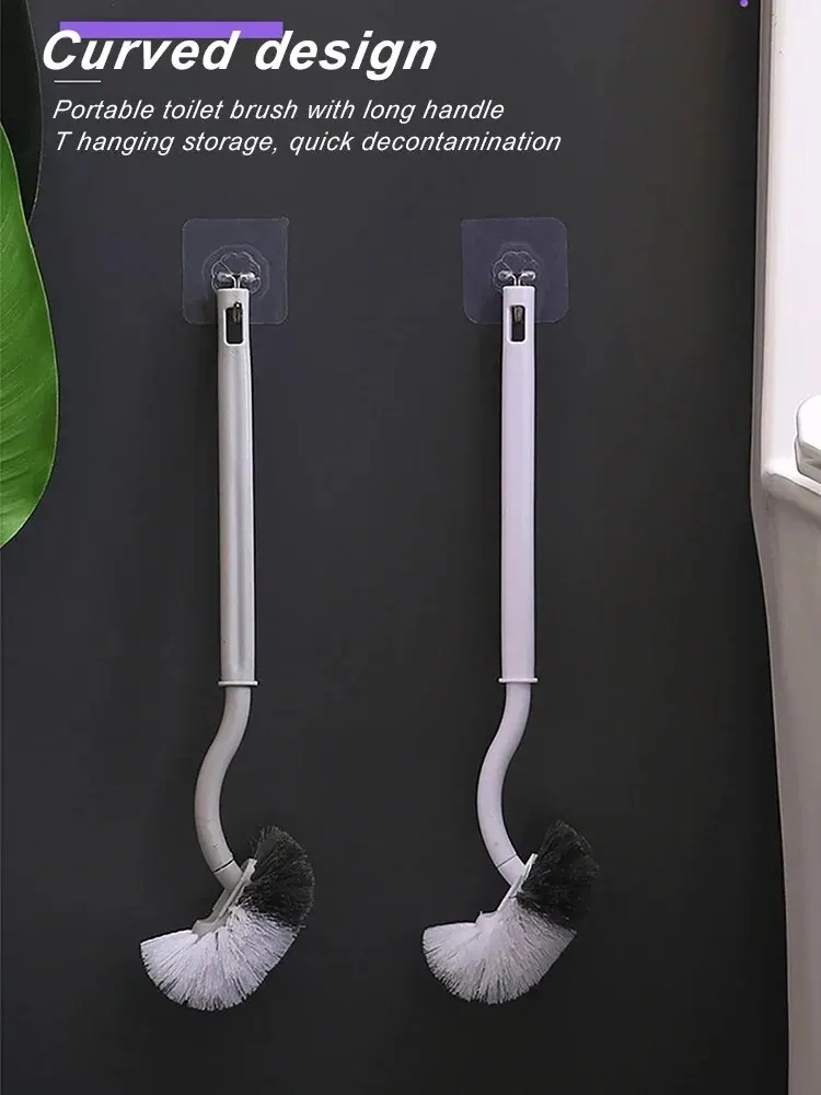 فرشاة تنظيف مرحاض مبتكرة بمقبض طويل، تصميم مريح للتنظيف العميق دون انحناء، تصل للزوايا الصعبة وتُثبت بسهولة على الحائط لتوفير المساحة.