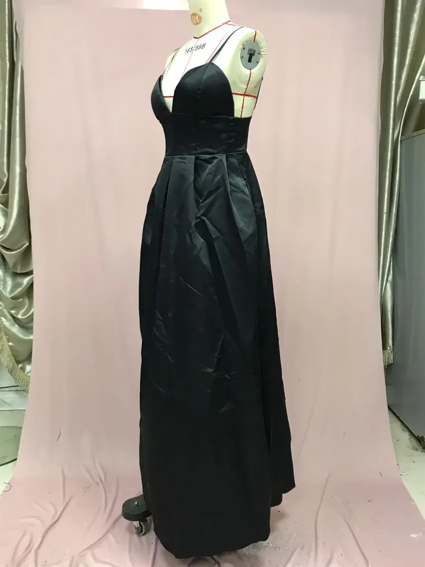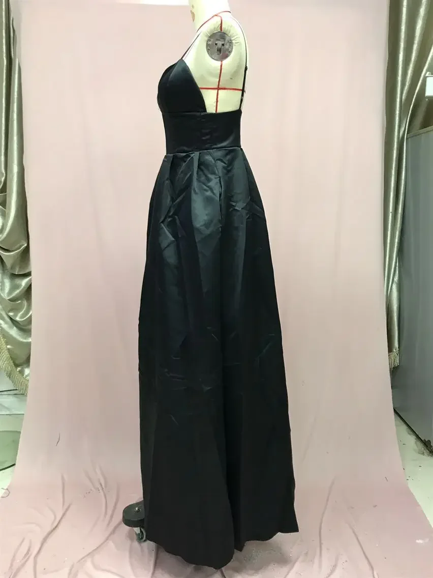 فستان سهرة أنيق بدون أكمام بقصة ضيقة تبرز القوام، بياقة V عميقة وفتحة جانبية جذابة، مثالي لصيف 2024 والمناسبات الراقية والرقصات المسائية.