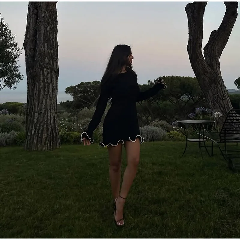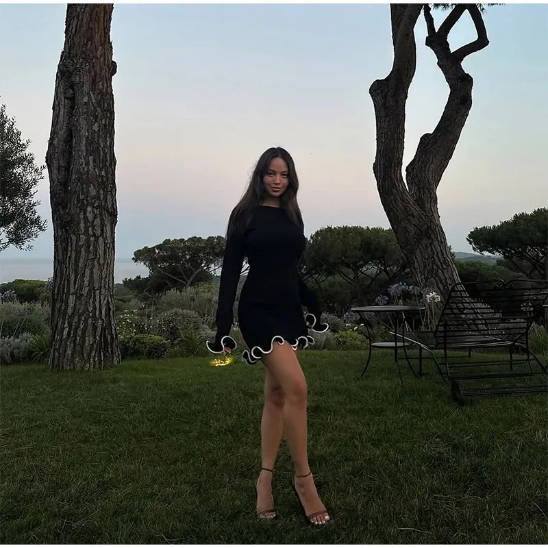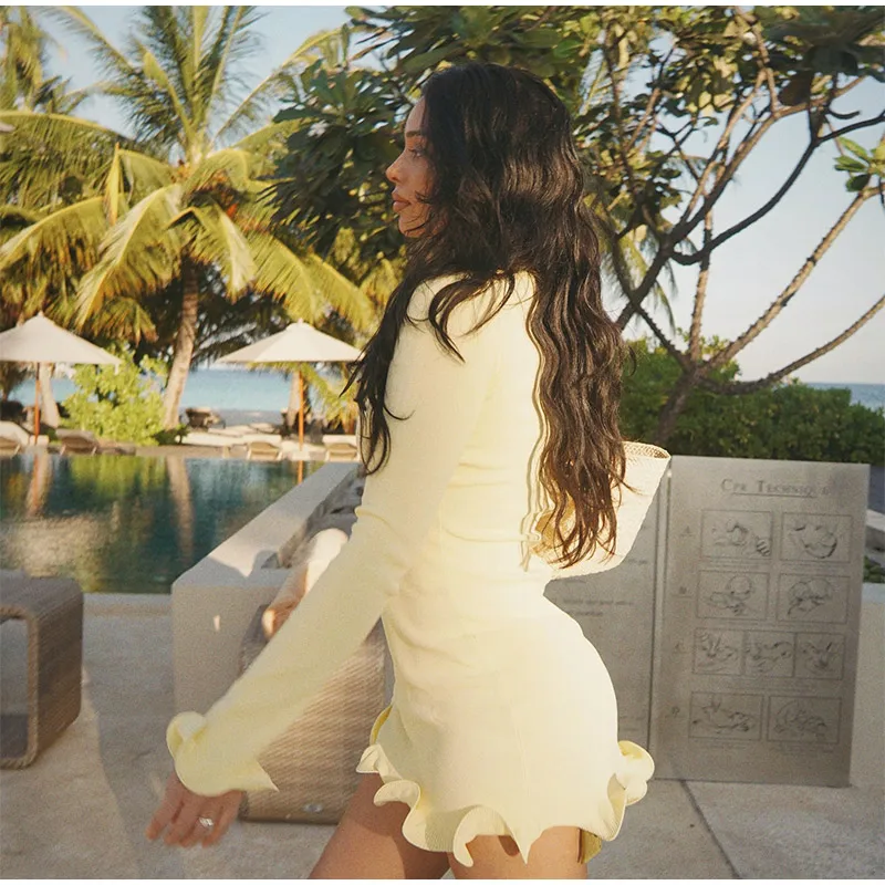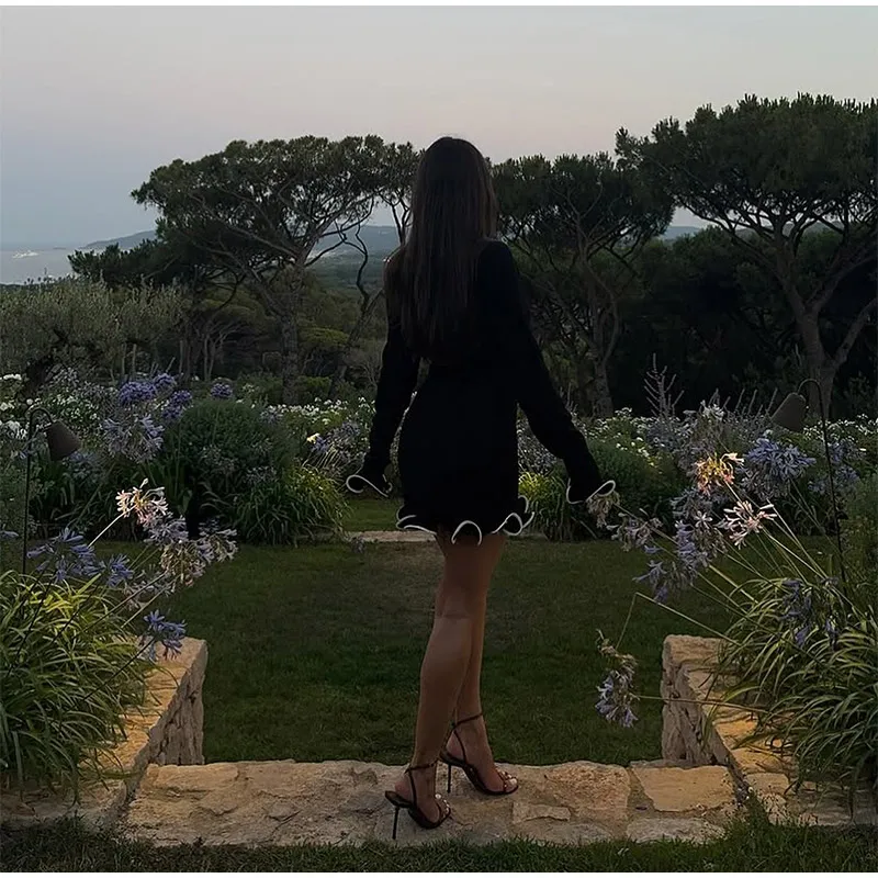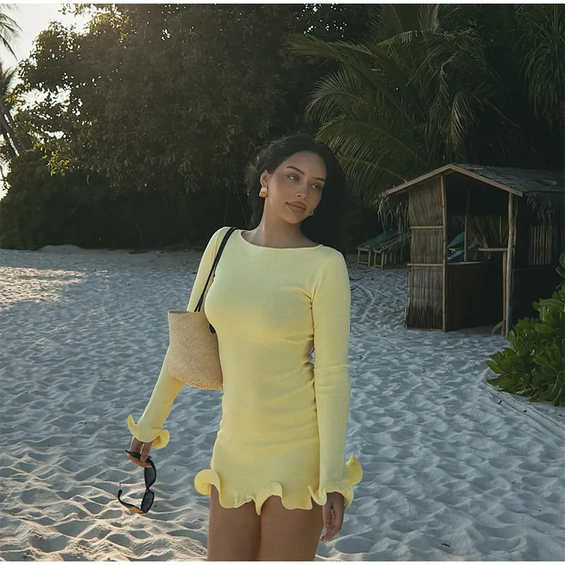 فستان أنيق من الشيفون الشبكي بطول ميدي وتصميم غير منتظم، يتميز بكشكش بطيات متعددة وكمّات فانوس أنثوية تضيف لمسة من الرقي والعصرية. مثالي لإطلالات الشارع الأنيقة أو السهرات الخفيفة.