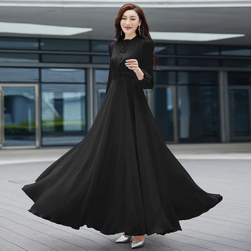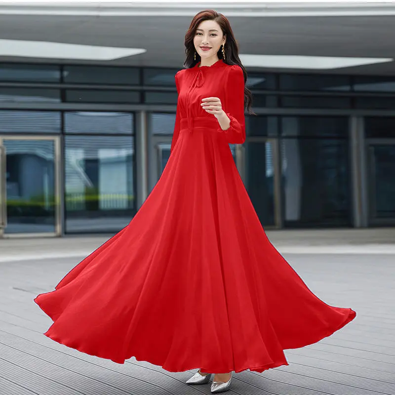 فستان أنيق بلون موحد يناسب الأيام المعتدلة، بقماش خفيف وقصة جذابة تمنحك أنوثة مريحة وأناقة متوازنة.