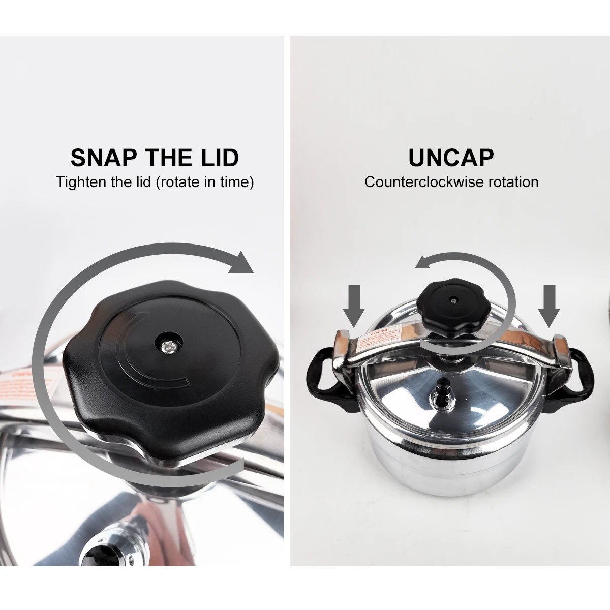 3.إغلاق الغطاء والتسخين بشكل صحيح: عند إغلاق الغطاء، تأكد من تثبيت الغطاء والوعاء بالكامل في مكانهما.عند التسخين، استخدم أولاً الحرارة العالية لعمل الضغط على الوعاء بسرعة، ثم تحول إلى حرارة منخفضة للحفاظ على الضغط بعد أن يبدأ صمام الأمان في التهوية.