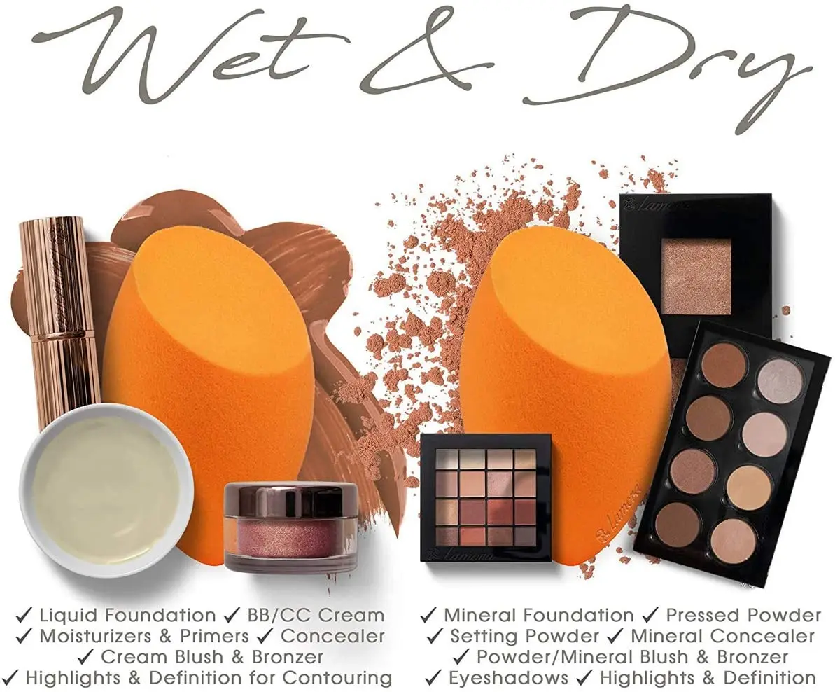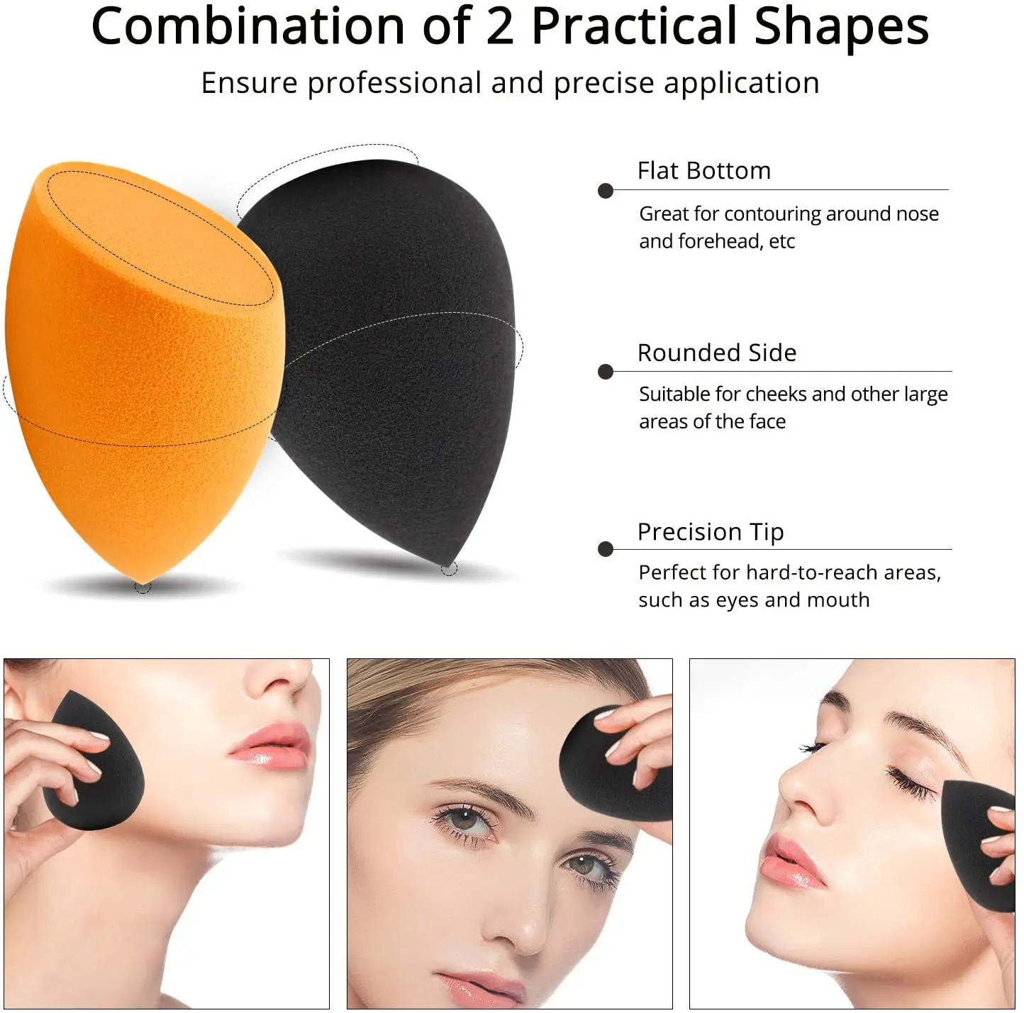 مجموعة من 10 إسفنجات مكياج عالية الجودة خالية من اللاتكس، مثالية لتطبيق الأساس، الكونسيلر، والبودرة. تصميم متعدد الاستخدامات جاف ورطب يمنحك لمسة نهائية ناعمة ومزجاً خالياً من العيوب