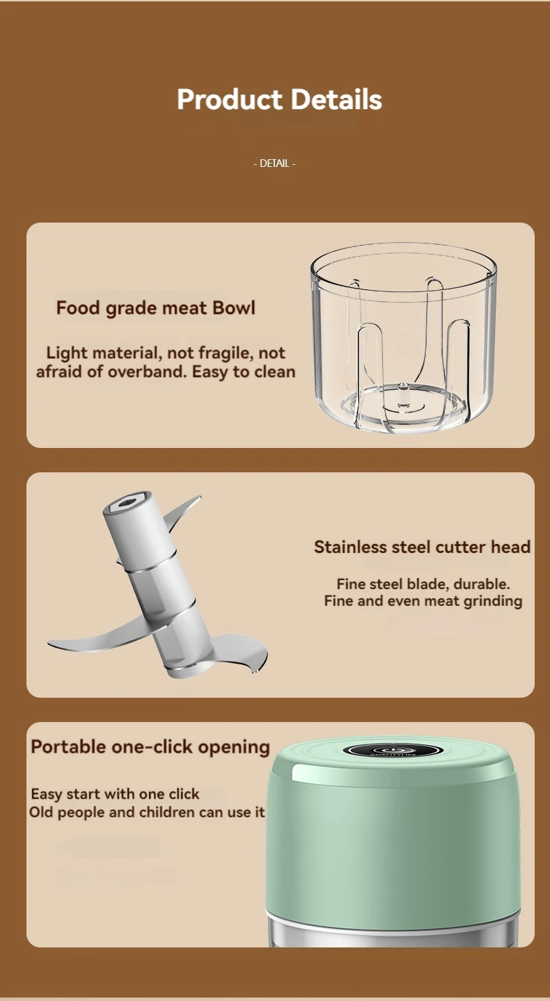 • تصميم صغير فعال:تم تصميم مفرمة الثوم الكهربائية الصغيرة هذه لتحقيق الكفاءة ، صغيرة الحجم ولكنها قوية في الوظيفة. إنه مثالي لسحق الثوم والزنجبيل والخضروات بسهولة.